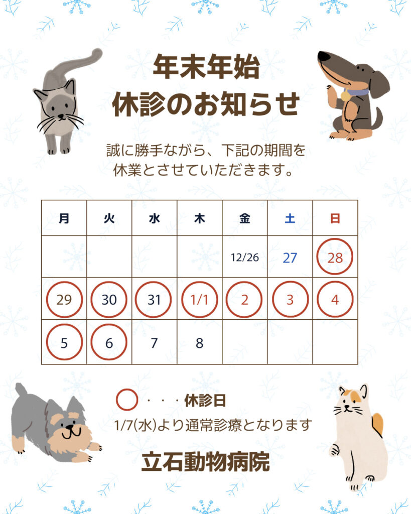 年末年始の休診日について